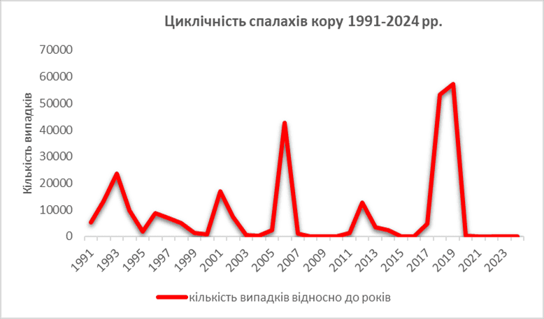 Спалахи кору мають певну циклічність. Вони виникають кожні 5-6 років. Останній спалах кору в Україні був у 2017–2019 роках. У цей період захворіли 115 283 людини.